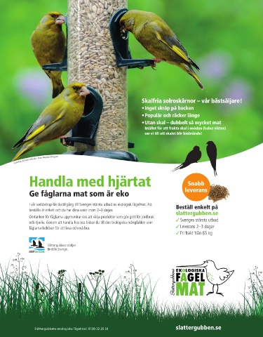 Slåttergubbens ekologiska fågelmat: 0738-32 25 59
