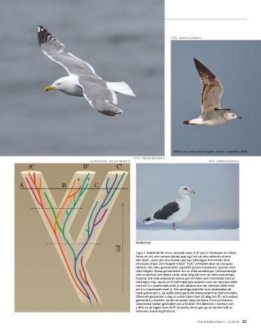 Figur 1. Släktträd för tre nu levande arter, A’, B’ och C’. Vid basen av trädet