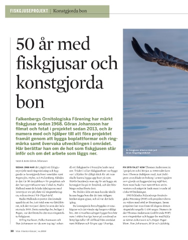 SEDAN 1968 HAR det pågått ett fiskgju- då ett fiskgjusebo i Svansjön hade rasat PÅ 1970-TALET KOM Thomas Andersson in