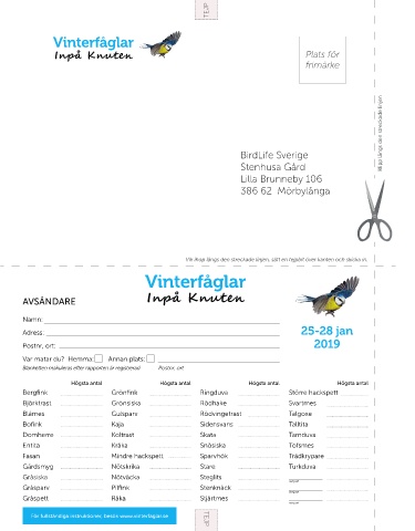 För fullständiga instruktioner, besök www.vinterfaglar.se TEJP